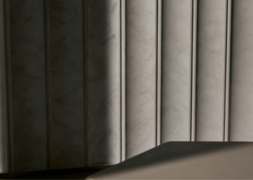 光の当たり方で表情が変わり、壁に深みのある陰影と豊かな風合いを生み出します。