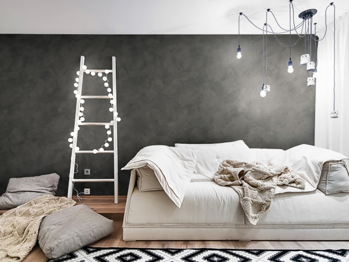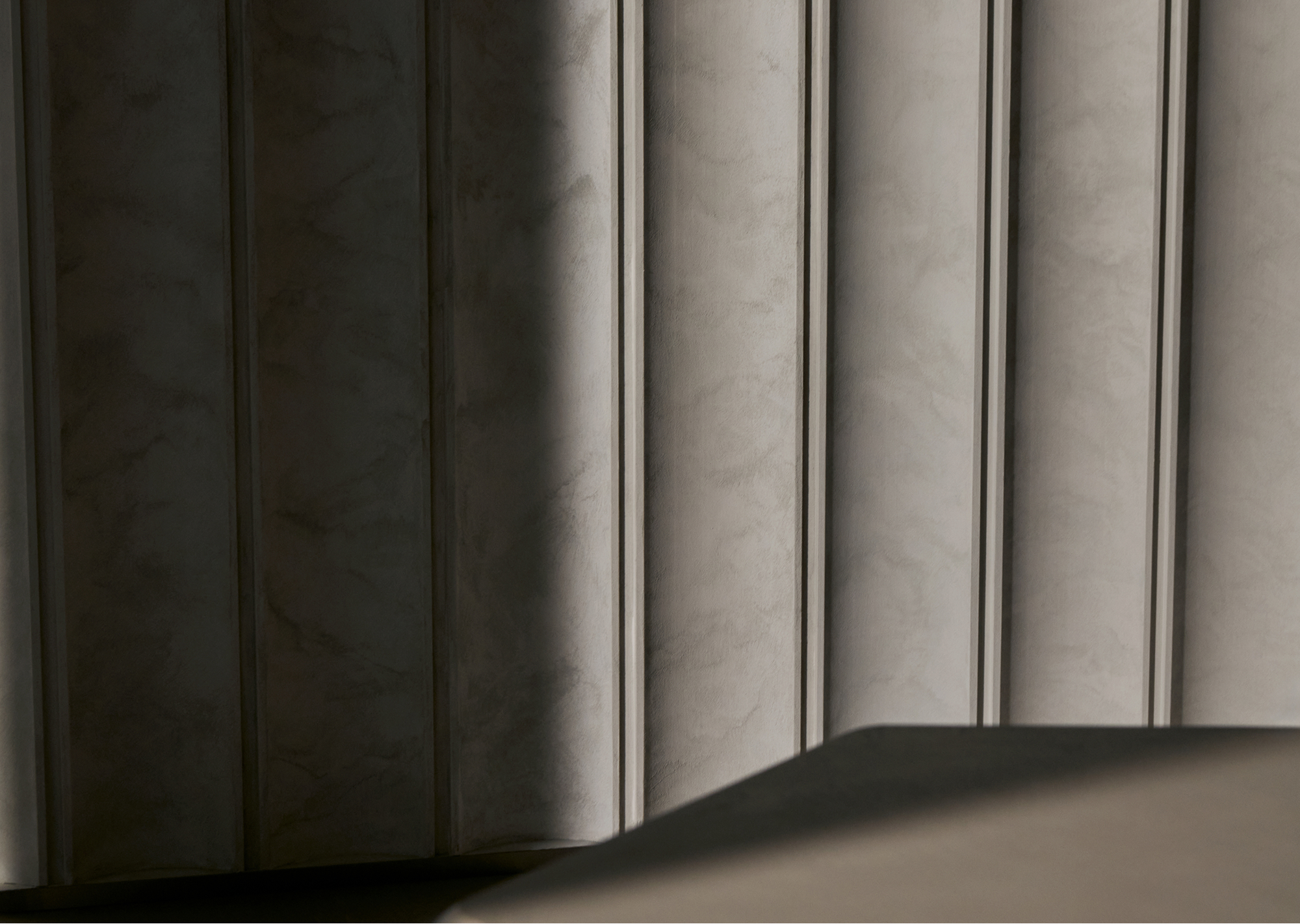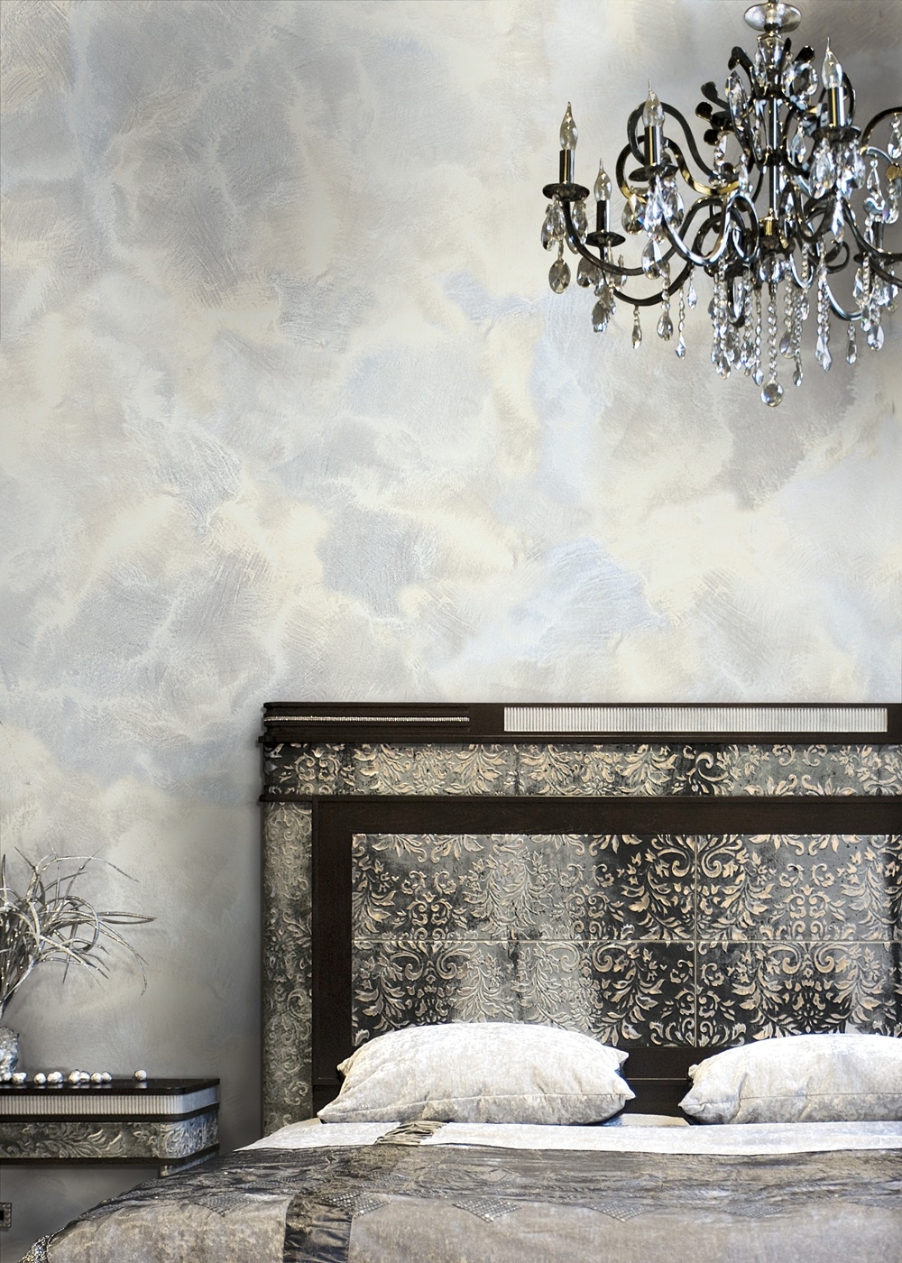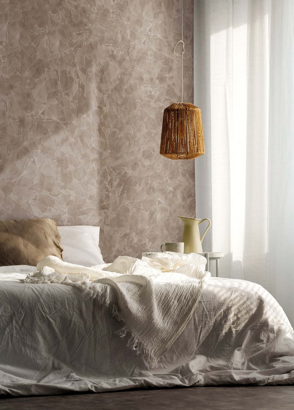 壁にシルクのような滑らかさと繊細な輝きをもたらす水性ペイントです。