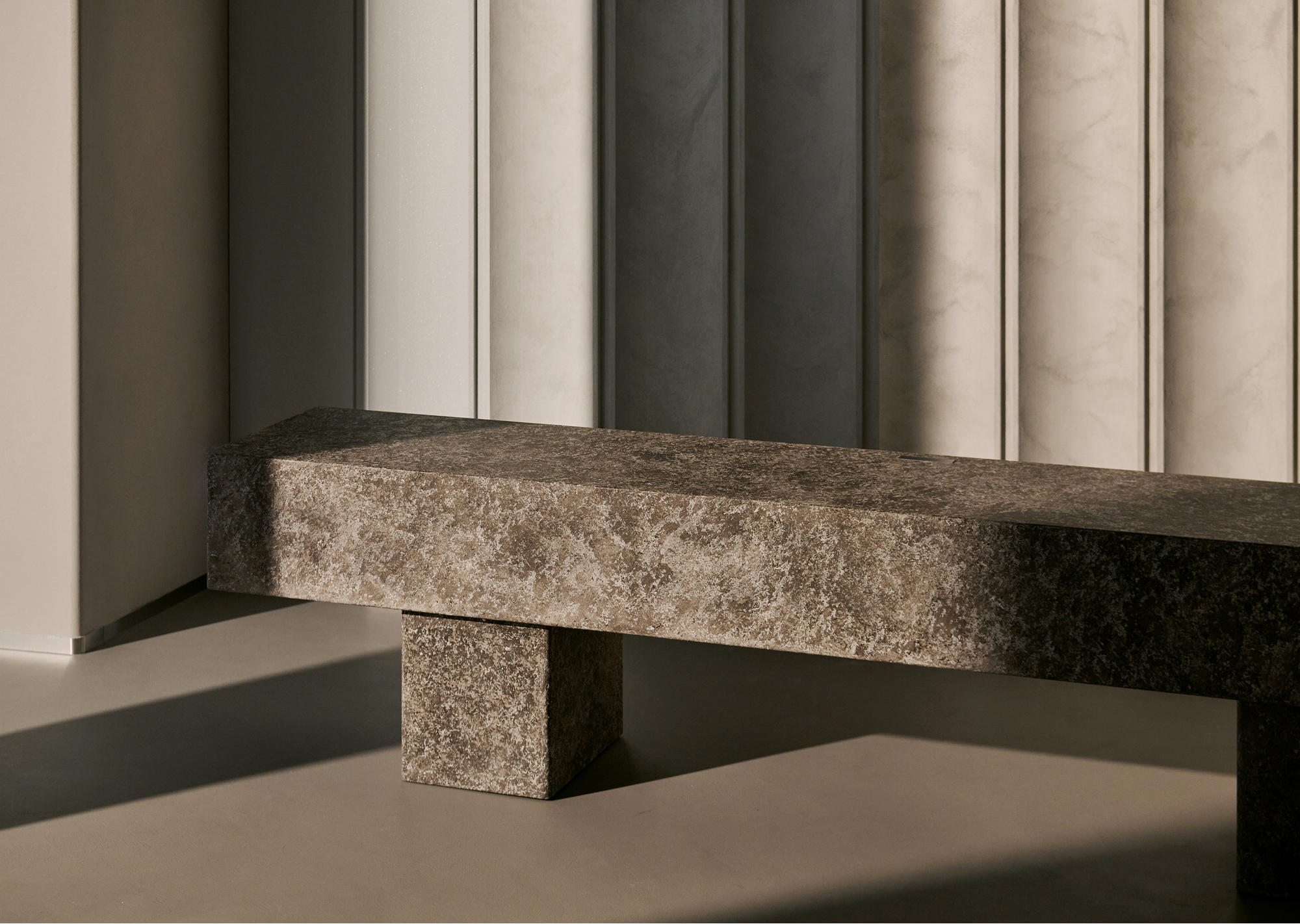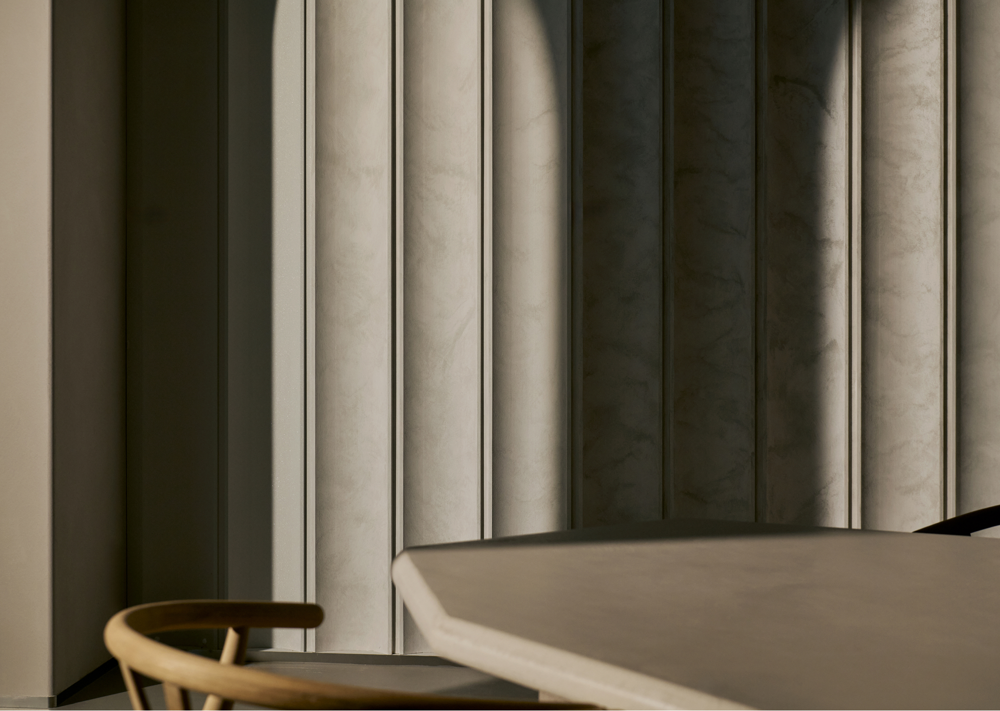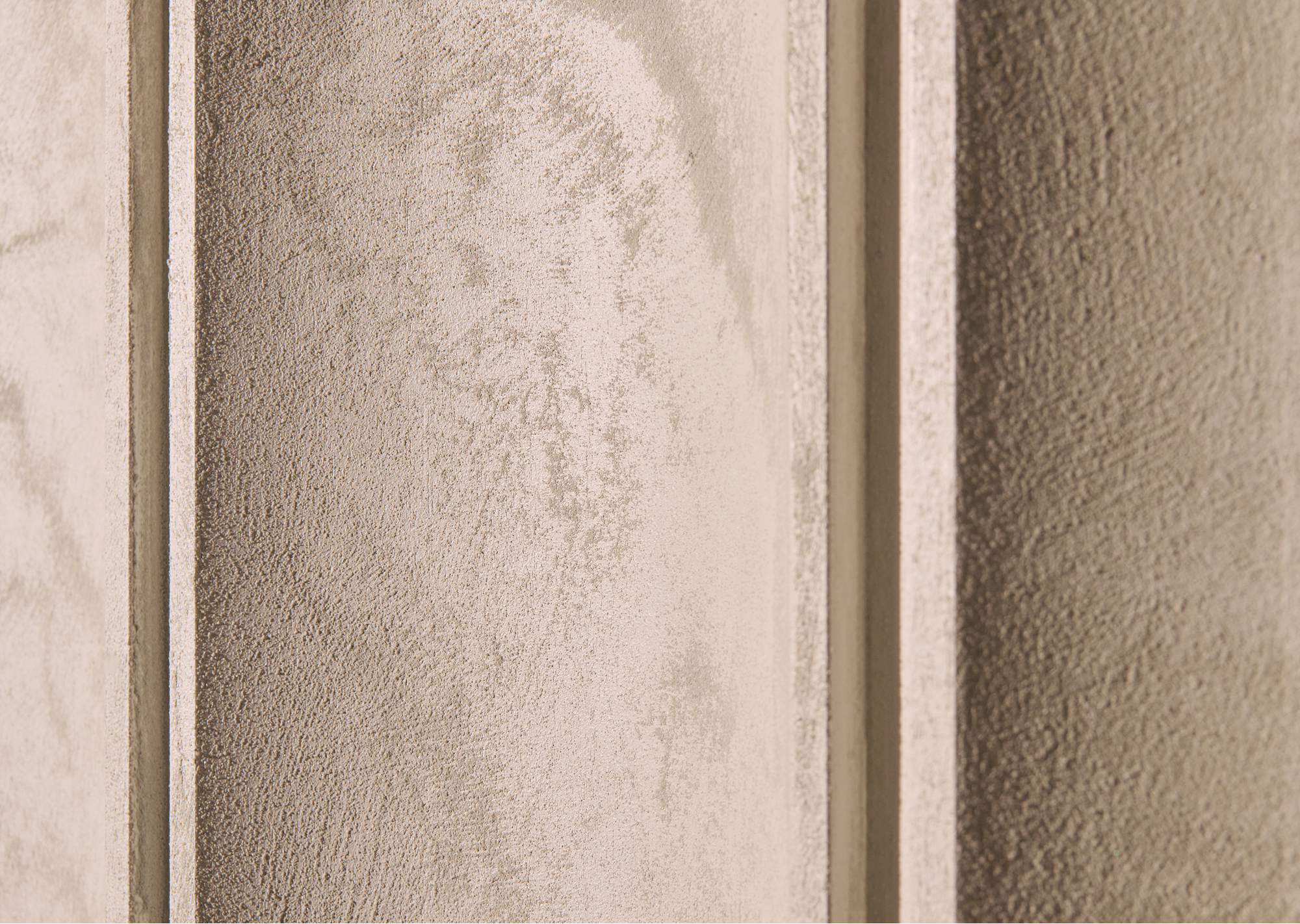 光の当たり方で表情が変わり、壁に深みのある陰影と豊かな風合いを生み出します。